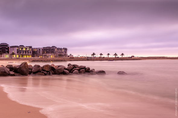 Eine charmante Küstenstadt mit deutscher Kolonialarchitektur, nebligen Morgen und einem adrenalingeladenen Spielplatz.